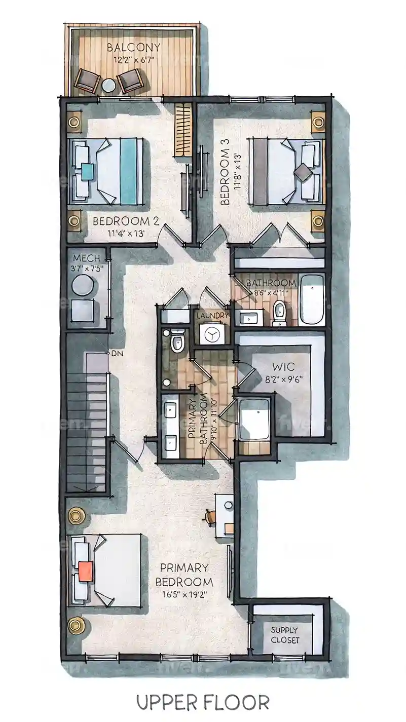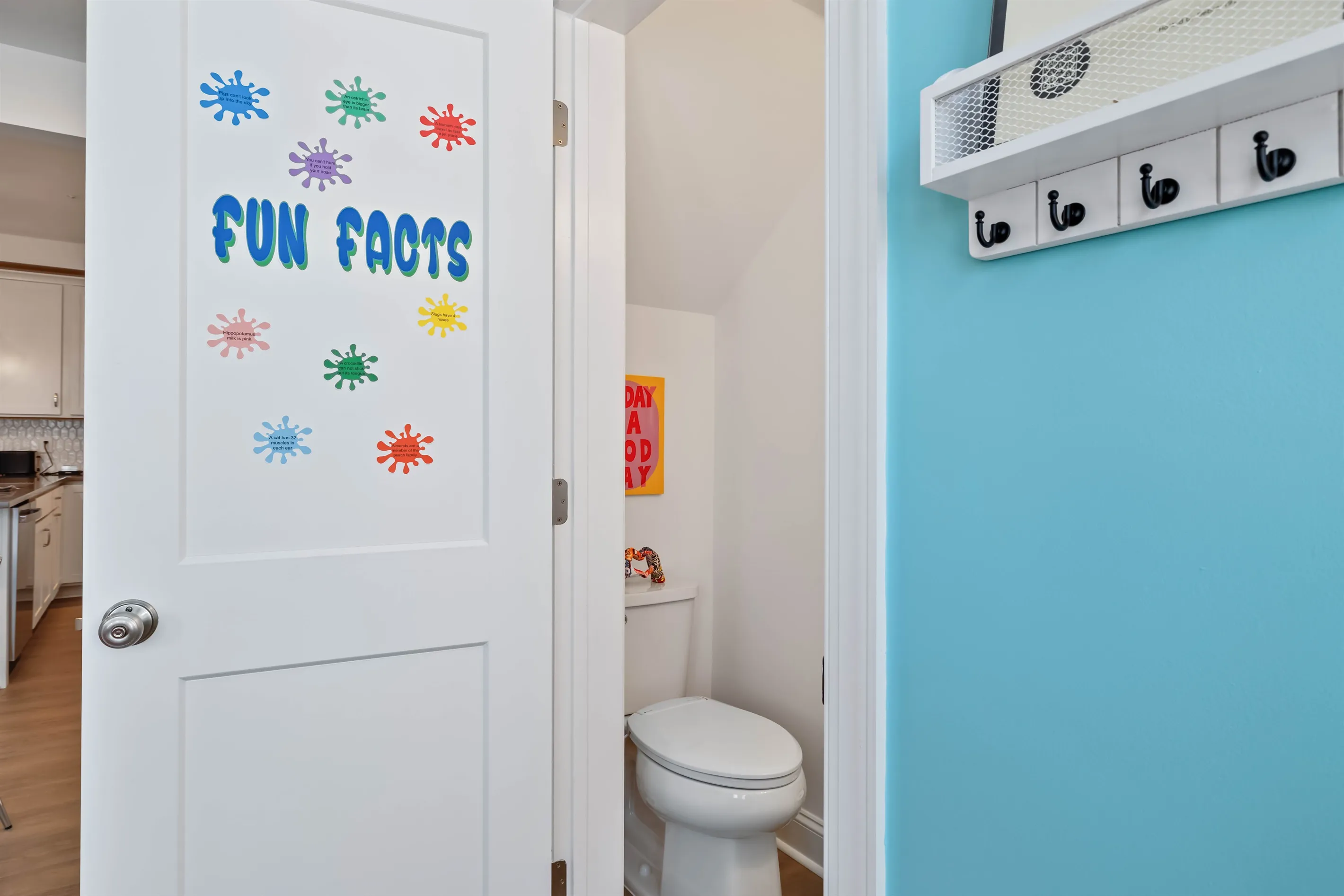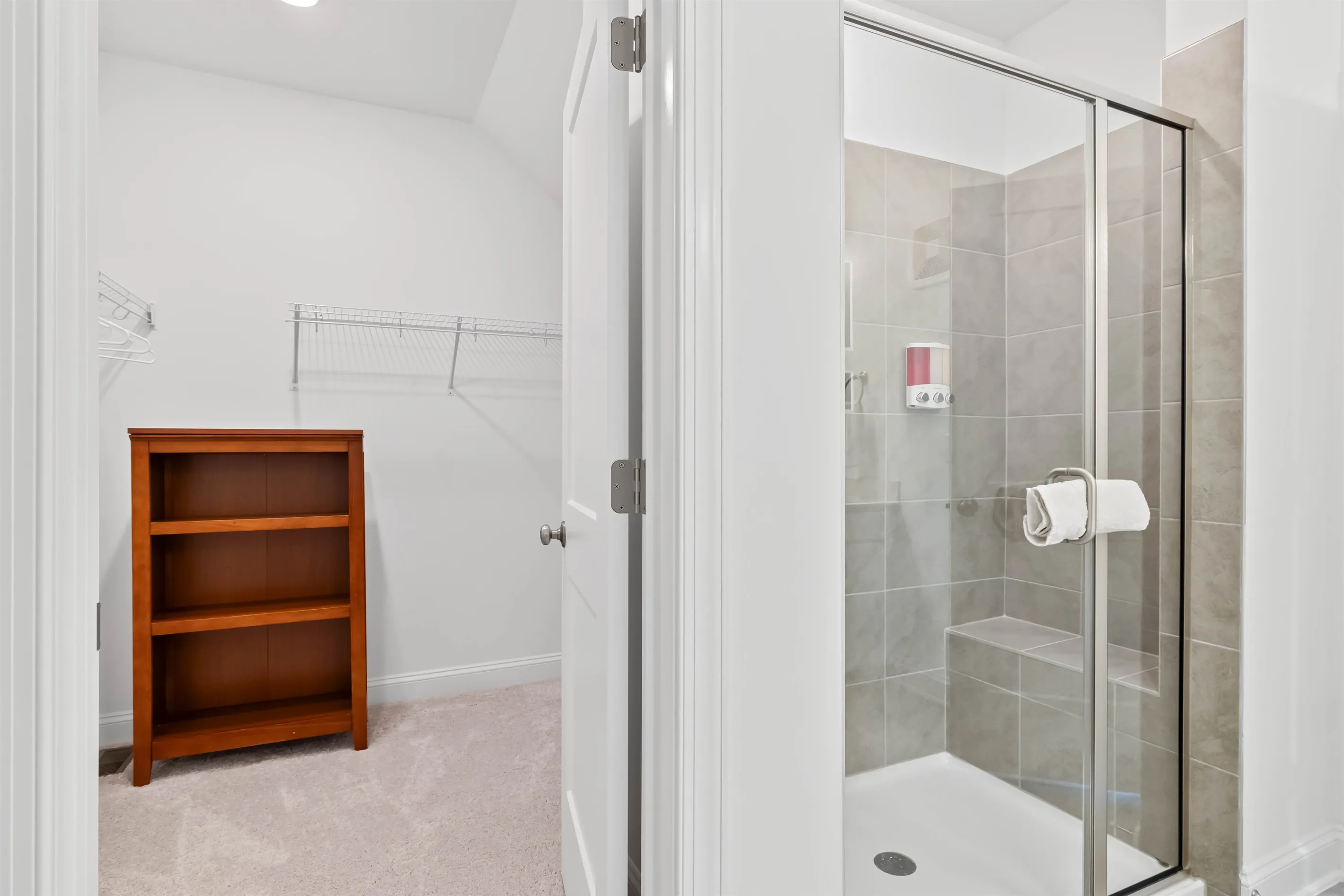 A laundry closet is located outside of the guest bathroom so that you can easily keep your clothes fresh during your stay.