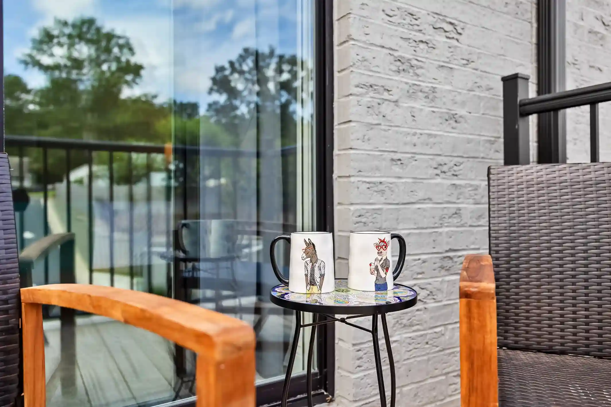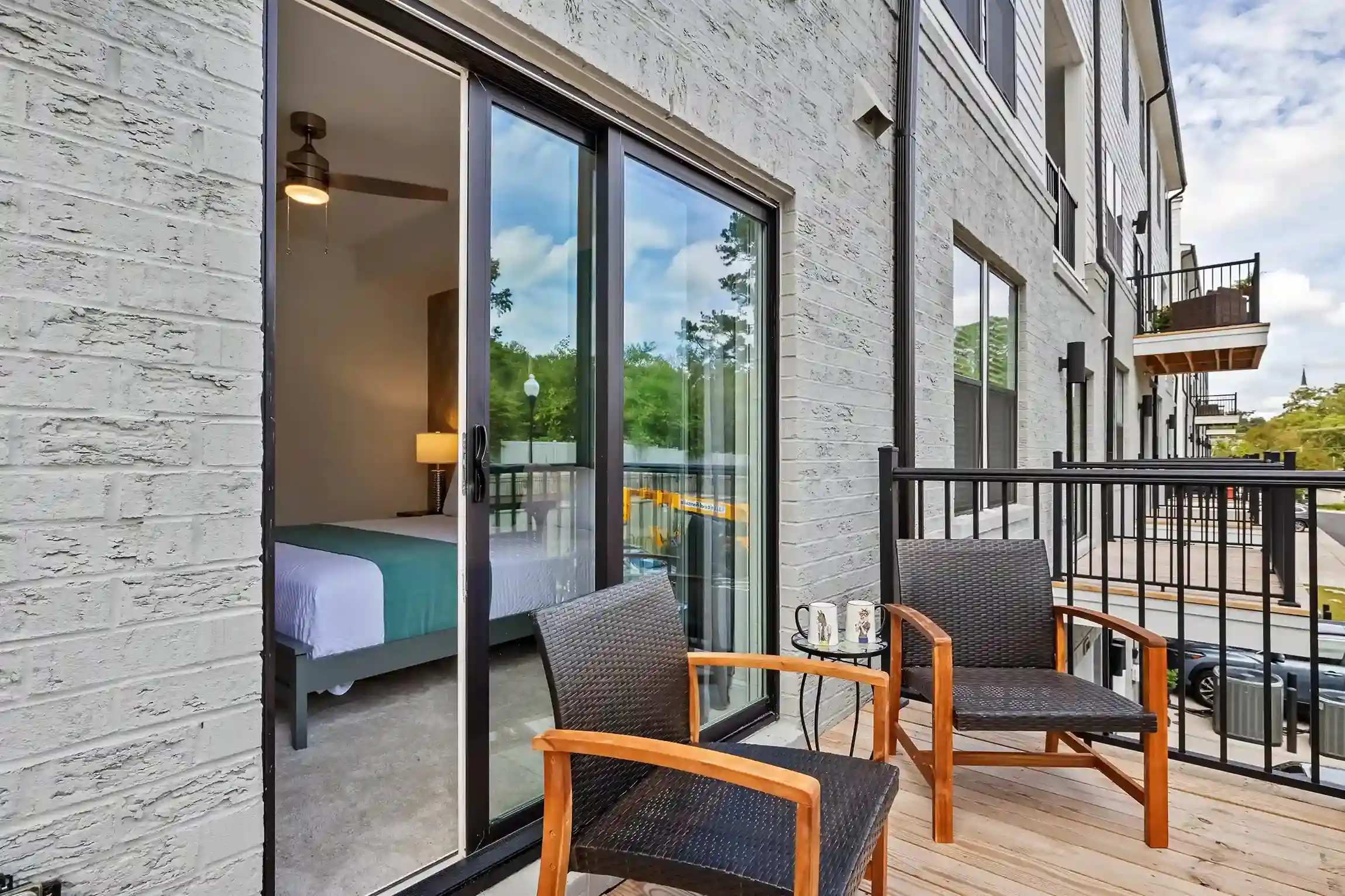 There is a balcony off of one of the guests bedrooms, complete with a sitting area.